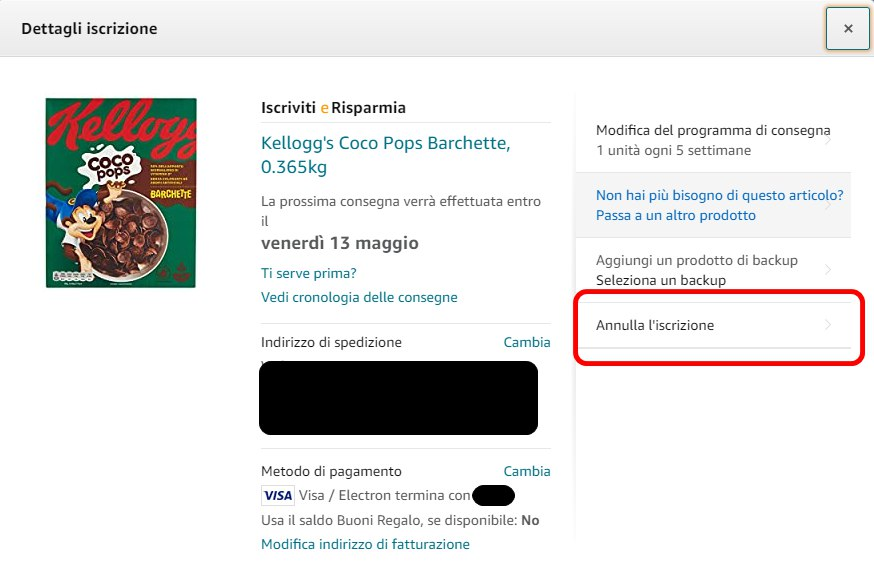 Se decidi che non vuoi più ricevere consegne automatiche, puoi cancellare l’abbonamento in pochi passaggi.