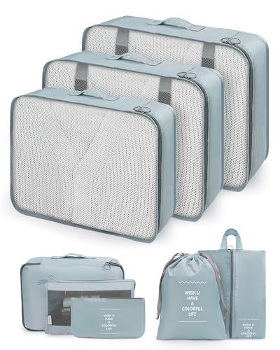 Borse Organizer da Viaggio, 8 Pezzi, Impermeabili e Traspiranti, Lavabili in Lavatrice, Borse Portaoggetti per Viaggi, Vacanze e Campeggio (Grigio)